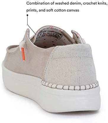 Los zapatos tienen una tela de revestimiento y una suela de etilvinilacetato. Se sujetan mediante una cuerda elástica y están diseñados con un tacón plano y un ancho de zapato medio.