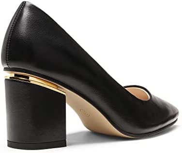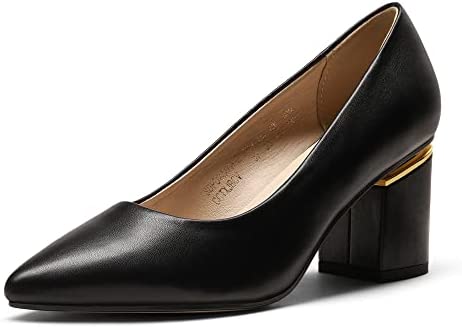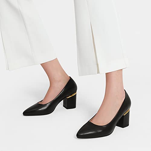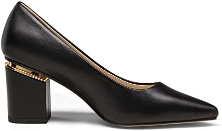 Zapatos clásicos de tacón para mujer con punta afilada y tacón ancho, hechos de PU.