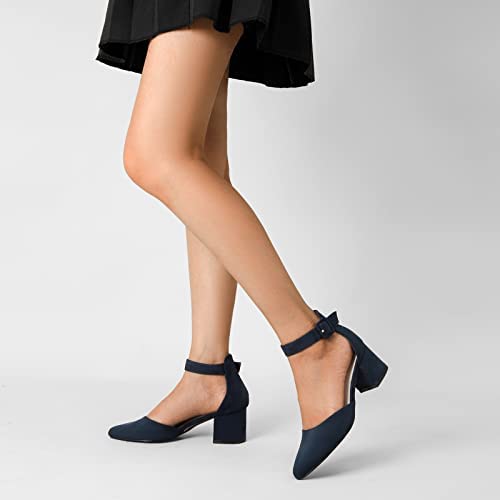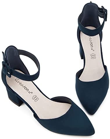 Estos zapatos están confeccionados con materiales de alta calidad, como el exterior de gamuza y la plantilla de cuero, lo que garantiza su durabilidad y confort. El diseño clásico con punta puntiaguda, correa del tobillo, hebilla ajustable y tacón ancho de 2,5 pulgadas los convierte en un complemento ideal tanto para vestidos y faldas elegantes como para looks más informales con jeans.