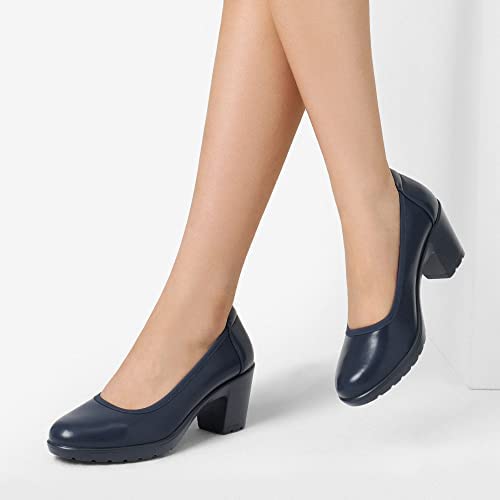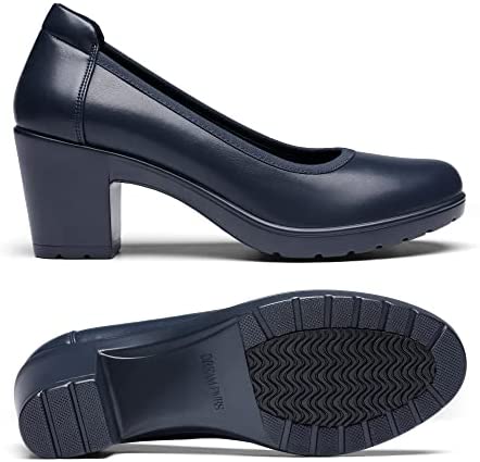 «Zapatos de salón clásicos cómodos de tacón alto para mujer, con tacón ancho y material de PU, modelo Balila SDPU2230W-E de DREAM PAIRS.»